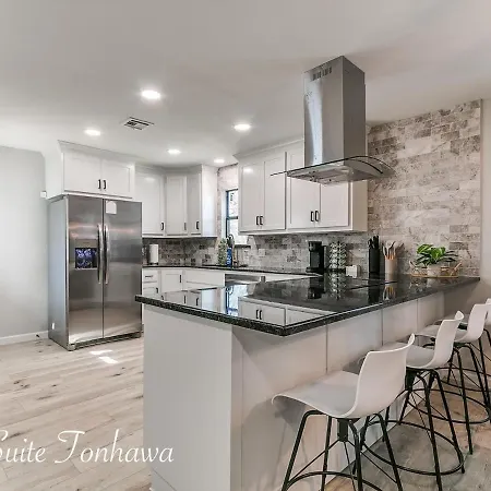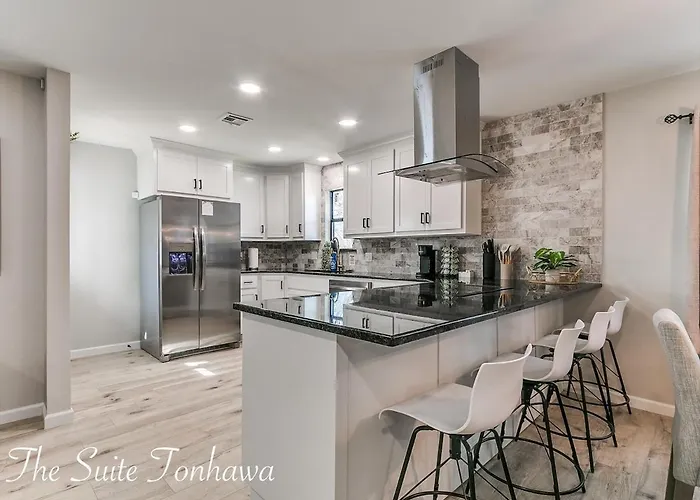 Guests are welcome to cook their own meals in a full kitchen of this Norman villa. Luxury Downtown Suite - Near Ou & Main St-Stylish villa is just near quick bites Cicis Pizza. Main/Park bus station can also be found 200 m from the Norman property.